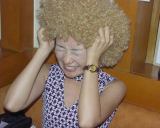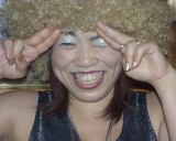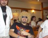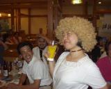 おめりこさんのカツラをみんなでかぶって記念撮影です。なぎらさん田代さん初めお店の従業員までつきあってくれました。