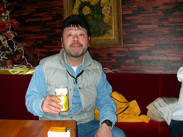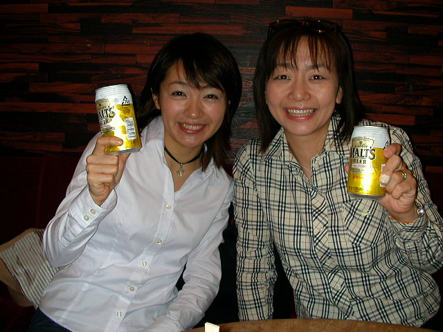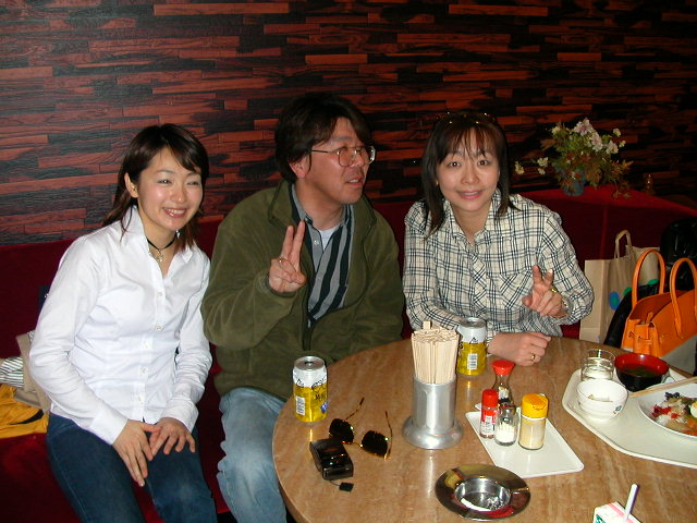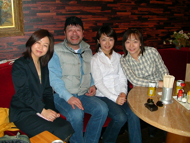 この喫茶店はセルフ・サービス。なぜか、真っ昼間だと言うのにビールを飲む人達がいる。(いいのか?いいんだ。)松波さんなんか、14時からのラジオショッピングの仕事があるというのに!!松波さんの、飾りっ気のない性格、結構気に入ってしまった。でも、皆さん、ホントに仲が良くて楽しそうだった。12:40。ここでお開きとなった。仕事に向かう人はそのまま仕事場へ。仕事の無い人は時間を潰す事を考える。あ〜ぁ、鼻の下が伸びきっちゃってる「サッシ運びのたけ」さん。真面目な「バン☆ビビンバ」さん。大佐とお茶で乾杯!相変わらず可愛い「あおい」さん、終始ご機嫌の「バン☆ビビンバ」さん、性格美人 ?の「松波利佳」さん。ちょいと緊張気味の「見え〜るいんもうライン」さん、「明日香」さん。午後の仕事場に向かわなくてはならなくて、昼飯抜きでも超ご機嫌な「うに」さん、「明日 香」さん。嫌がられているのに髪の匂いを嗅ぐ変態「佐藤の準一。」、ホントに嫌がっている「明日 香」さん。地下から出てきてまぶしい顔の「バン☆ビビンバ」さん、フットワークの軽い「星☆ チューバ」さん。酔っ払いおやじの「居候・大島肇」さん、「明日香」さん。