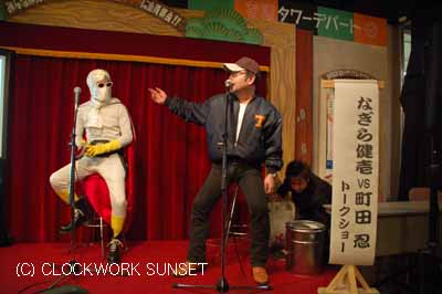 このビルは初めてだ。お台場DECKSと言って、昭和の町並みが再現されているフロアーがある。その名も台場一丁目商店街です。↑お台場海浜公園駅から通じる入り口には、スバル360が停まっていた。クルマ好きじゃなくても、知っている人は多いでしょうね。昭和の代名詞?に近いものがあるかな。 トークライブは14:00と16:00の2回公演でした。町田忍さんは月光仮面の装いで、2回とも登場。観客を楽しませてくれるのである。スクリーンに映した写真を見ながらのトークは続き、私たちを楽しませてくれるのだ。大佐のベーゴマコレクションも見る事が出来たしね。満足です。 著作権についてはこちらをご覧ください。 11月24日(土曜日) 今日はMANDA-LA2で大佐のライブ。いつものようにクルマで行き、いつもの駐車場に停める。マックであ〜だこ〜だと開場時間まで時間を潰し、各が集まったところで、会場に向かうのである。ライブの写真&曲目はそのうちにね。