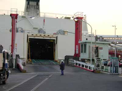 ところが今日は1階部分↑に乗船。こっちの方が乗せやすいか?とにかく、狭い船内を誘導に従って着けなければならない。中は暗いしね。ま、何とか自分が引っ張ってきたものを乗船して終了です。この作業が無事終了するとホッとします。