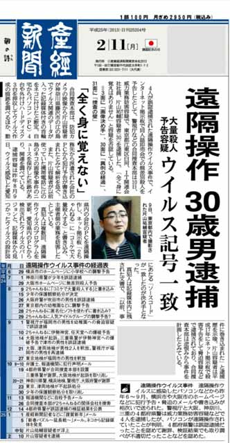 こんな感じでね。無精者の俺だけど、エンジンオイルだけはマメに替えたい。エンジンオイルの交換ってのは、給油と同じだと思っていますからね。 ちょっとトラブル発生。アルコール検知器が誤作動を起こしています。厄介だ。機械を代える事になるでしょうね。なんでだ? この後プールに行って、水中歩行です。祝日という事もあって混んでいました。でも今日行っとかないと、23日までプールに入れない。メンテナンスらしく、10日間休業するのだ。それにしても子供が多かったな。この後、オートバックスでスイフトのオイル交換をして、俺の休日出勤は終了です。 遠隔操作の男を逮捕の記事です。この容疑者の逮捕前に、警察は随分と事前情報を流していたようだ。逮捕前の映像なんかがメディアに出回っている。この時点で有罪が確定したわけでは無く、容疑者なのにね。はっきり言ってこの事件で、警察は誤認逮捕をしている。それを打ち消すかのような放送のさせ方ですね。そしてこの30歳の男性が無実だったらどうするのだろうか?そんな事を考えてしまいました。 2月12日(火曜日) これと言って何もなし。 2月13日(水曜日) 積もらないとは言われていたけど、雪が降るというので、やや早めの出勤でした。3:00です。部分的にシャーベット状になっていたが、ノーマルタイヤで走行出来るレベルでしたね。
