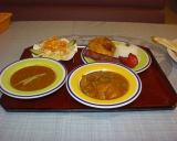 先日やるMANで紹介されたインド料理の店“ラジャ”に行ってきた。出来て間も無くということもあり、お店は小奇麗で、感じよかったです。ランチタイムが終わる寸前に行ったのですが、感じよく迎えてくれて。注文したものはGセットなるもので、カレーを二種類選び、ライスとナンとサラダが付1350円!!ボリュームもあり安いです。(写真を見てね)今ならやるMAN聞いてきたといえば、+100円で注文できるランチタイムの飲み物を無料で提供してくれます。(期間限定詳しくはお店へ!!)